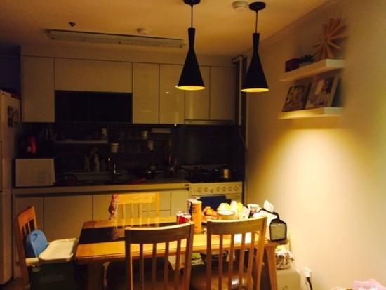 수납공간이 너무 적어 원래는 아일랜드 테이블을 하려 했으나, 4월에 아파트 난방공사로 인해 일단 식탁을 놓았어요. 빨리 공사가 끝나고 아일랜드 테이블로 바꾸고 싶네요. ㅜㅜ