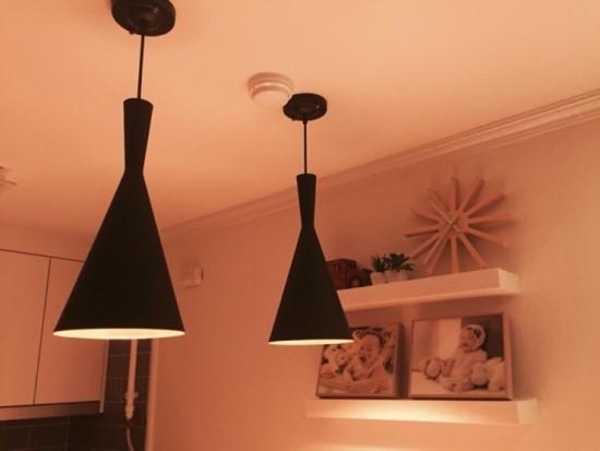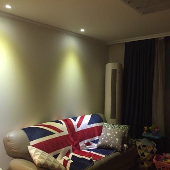 거실 모습입니다. 집이 좁아 거실은 화이트벽지로 하고, 핀조명을 쇼파 위로 달았어요.