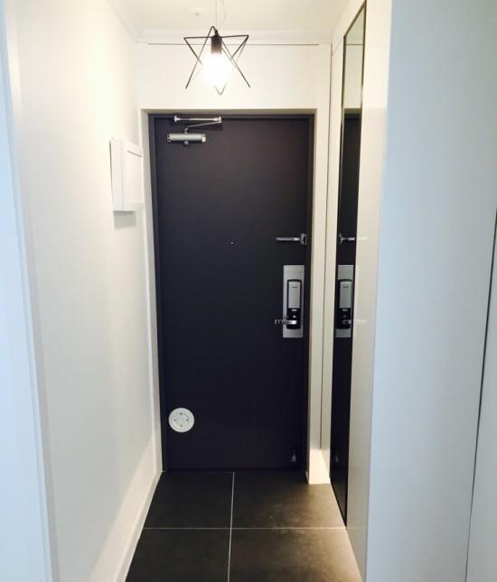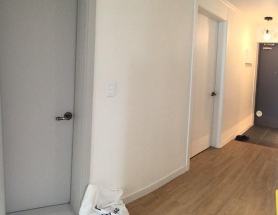 복도와 현관 모습입니다. 화장실은 회색 문으로 해서 포인트를 주었어요,